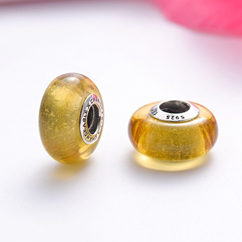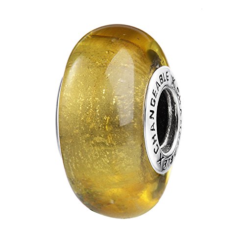 CHANGEABLE Bead Charm per Donne Fascino Charms Argento Sterling 925 Giallo Topazio Respirare