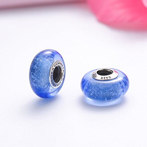 CHANGEABLE Bead Charm per Donne Fascino Charms Argento Sterling 925 Blu Zaffiro Luce Respirare