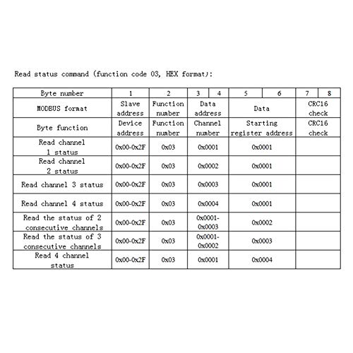 MODBUS - Sotto la modalità di comando MODBUS, questo modulo relè può supportare fino a 64 dispositivi in parallelo, i comandi MODBUS possono essere configurati come HyperTerminal seriale (assistente seriale) o "Modbus Poll"