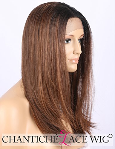 Chantiche - Parrucca da donna con attaccatura “lace front” marrone, capelli sintetici lisci, lunghezza media, resistente al calore