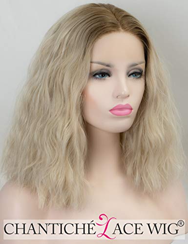 Chantiche Short Bob WIG - ombre Blonde Lace Front parrucca Bob con radici scuro ondulato resistente al calore sintetico parrucche per le donne