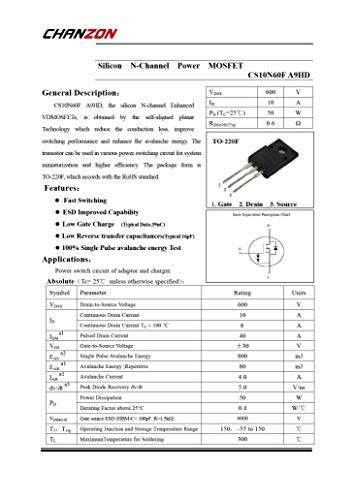 Marchio: CS10N60F Sostituzione per: FQPF10N60C Originale nmos Mosfet Transistor Bipolare Junction Triodo per 10N 60