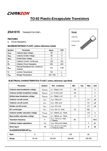 Chanzon 100 pezzi 2SA1015 TO-92 PNP Transistor -150 mA