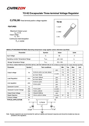 Chanzon 50 pezzi 78L08 TO-92 Transistor regolatore di tensioneA tre terminali