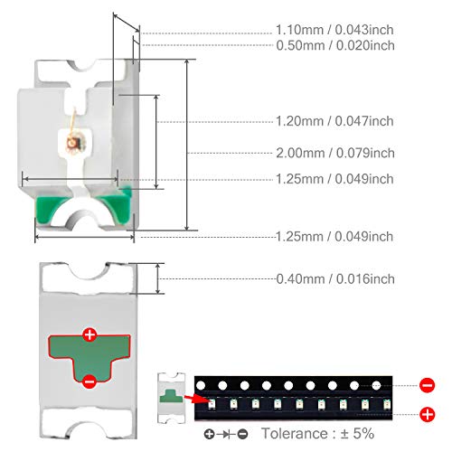 Parametri: DC 2V-2.2V Volt 20mA, Polarità anodo e catodo: fare riferimento alla figura 3, dispositivo a montaggio superficiale