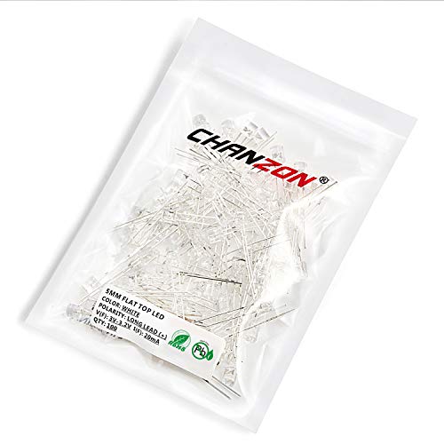 Chanzon 100 pezzi 5mm Bianco Flat Top LED luci a diodi (lente trasparente trasparente) Illuminazione brillante Lampadine Lampade Componenti elettronici Indicatore Diodi emettitori di luce