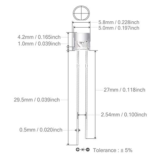 Peso di spedizione: 1,22 once / 0,03 kg, confezione: confezione da 100 pezzi Leddiodo (set di mini LED con foro passante DIP a 2 pin)