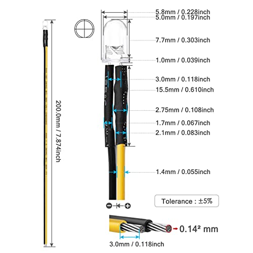 Cerchi un Diodo Led Abbastanza Luminoso Con Resistenza Corretta (±1% Tolleranza) Precablato? Fili di rame UL 24awg saldati a macchina (NESSUNA saldatura a mano) che NON si sfaldano facilmente, un sostituto perfetto per l'illuminazione del cruscotto e del controllo.