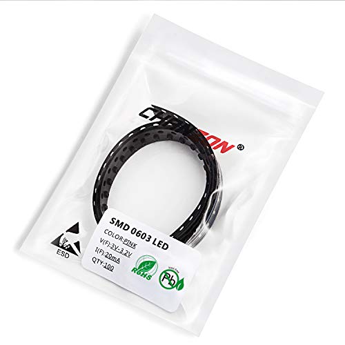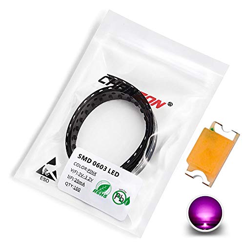 Chanzon 100 pezzi SMD 0603 (1,6 mm x 0,8 mm) LED rosa luci a diodi 3V 20 mA Lampadine di illuminazione Lampade Componenti elettronici Indicatore Diodi a emissione luminosa