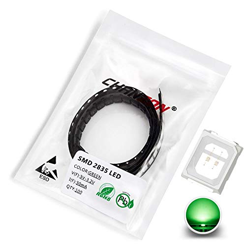 CHANZON 100 pezzi 2835 luci a diodi LED SMD verdi (chip per montaggio superficiale 2,8 mm x 3,5 mm DC 1400-1500mcd 3 V-3,2 V) Lampadine ad alta intensità di illuminazione super brillante