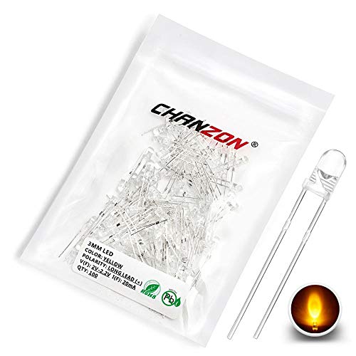 Chanzon 100 pezzi 3mm LED giallo luci a diodi (chiaro rotondo trasparente DC 2V 20mA) Lampadine per illuminazione brillante Componenti elettronici Indicatore Diodi a emissione luminosa