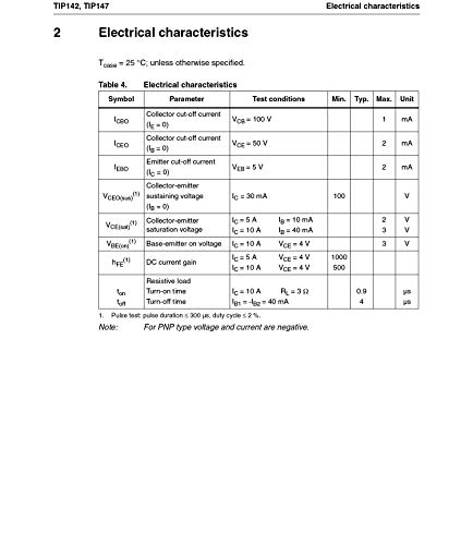 Panoramica: TO220 PNP Darlinton Transistor complementare TIP 142, Corrente: 10A, Tensione: 100V
