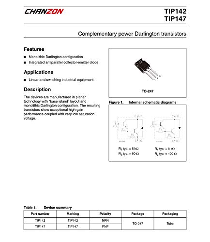 Chanzon 10 pezzi TIP142 TO-220 Potenza PNP Darlington Transistor 10A