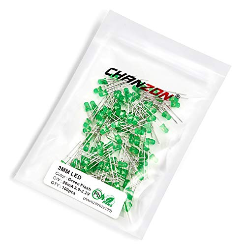 Chanzon 100 pezzi 3mm LED verde lampeggiante Luci a diodi 1.5Hz Lampeggiante (lente diffusa Smerigliata rotonda DC 3V 20mA) Illuminazione brillante Lampadine Componenti elettronici Indicatore Diodi