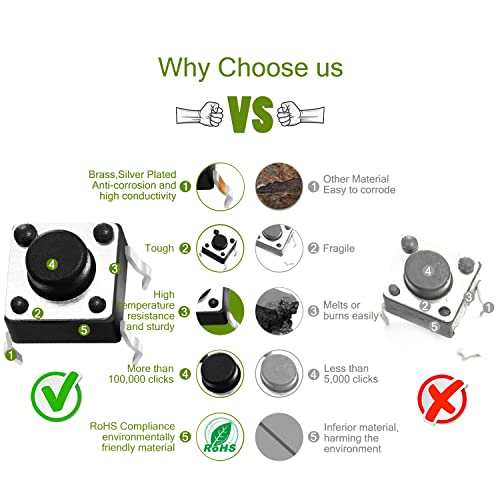Viene fornito con un piccolo pulsante momentaneo 6x6 mm x 5 mm a 4 pin in miniatura con interruttore a cupola tattile a pressione morbida sensibile.