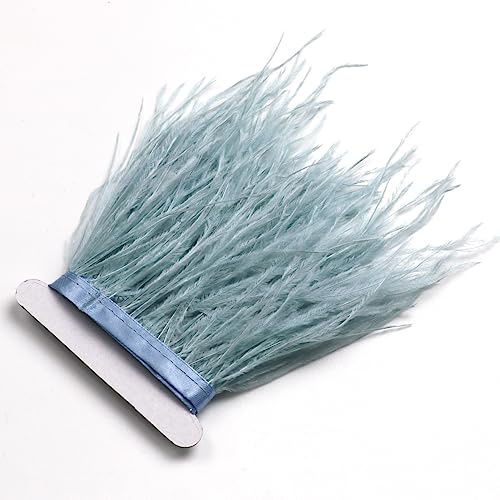 Chaojukj 1 m di piume di struzzo blu chiaro, frangia con nastro di raso, per abiti, cucito, artigianato, costumi, confezione decorativa