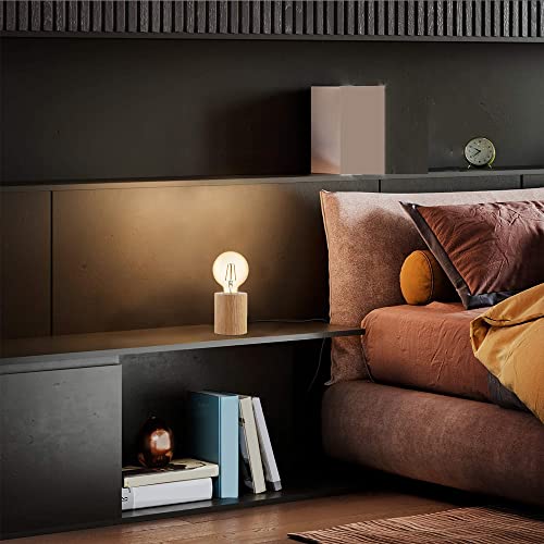 ChaoZan Lampada da tavolo a forma di Il giro in legno, lampada da tavolo in legno con attacco E27, legno di quercia, Lampada da scrivania Retrò per la casa camera da letto soggiorno comodino cucina