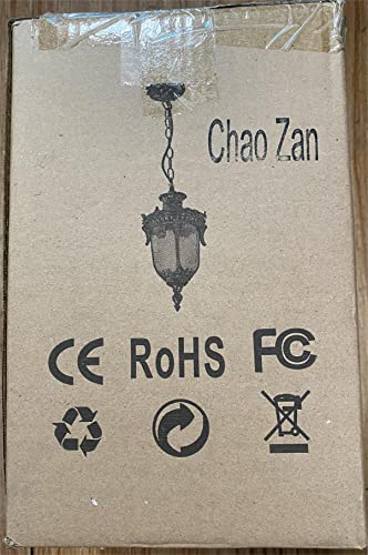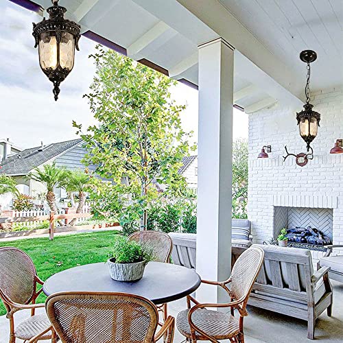 ChaoZan Rustico soffitto Outdoor Luce Lanterna di Vetro martellato Vineyard Impermeabile Gazebo Lampada lampadario Esterni Lampade da soffitto Porticato Corridoio Giardino Balcone Patio E27, Nero