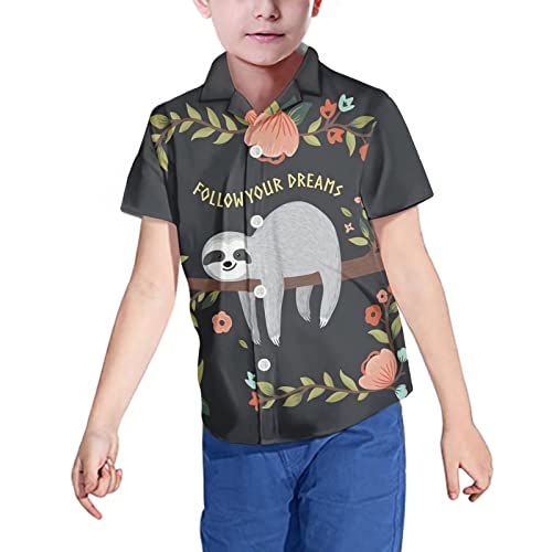 Chaqlin Camicia estiva hawaiana Aloha a maniche corte con bottoni e bottoni, per feste in spiaggia, 5-16 anni, Segui il tuo bradipo, 7-8 Anni