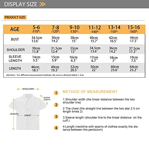 Vestibilità regolare: il vestito con bottoni è adatto per bambini di 5-16 anni. Si prega di considerare l'età e l'altezza per prendere una taglia giusta in base alla tabella delle taglie, scegliere una taglia più grande se i bambini amano più larghi