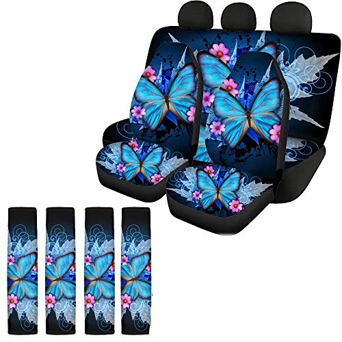 Chaqlin - Set completo di 8 accessori interni per auto, motivo farfalle, colore: blu