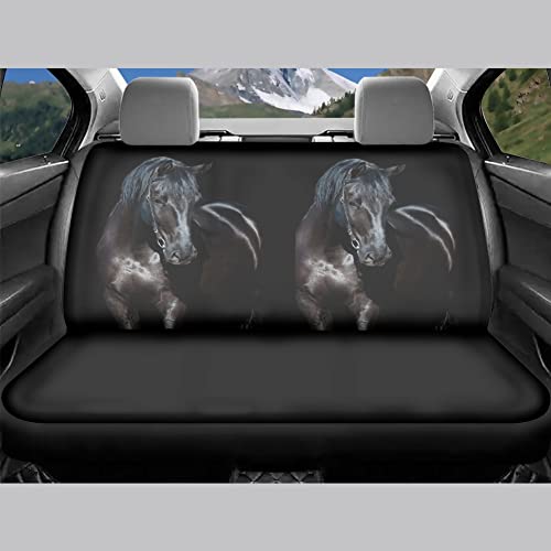 Chaqlin - Set completo di 4 coprisedili per auto, con 2 coprisedili anteriori + 2 coprisedili posteriori divisi, accessori per interni auto, compatibilità universale, motivo: cavallo nero