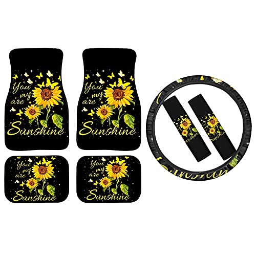Chaqlin Sunshine Sunshine - Cuscino per interni auto, resistente, per donne, include coprivolante stampato girasole, cintura di sicurezza, set completo di 7 pezzi