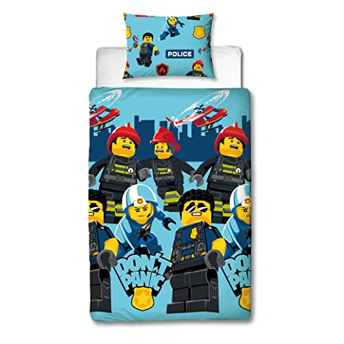 Character World Copripiumino singolo ufficiale Lego City Panic Design | copripiumino reversibile blu su due lati con federa