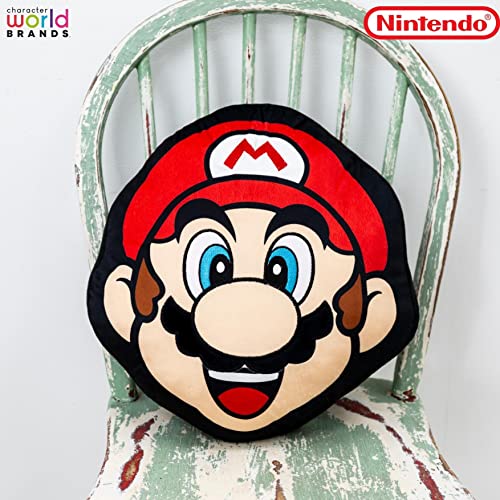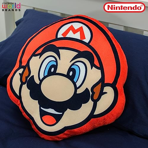 Character World Cuscino ufficiale Nintendo Super Mario | Disegno pila Mario Head Face Design 40 x 36 cm rosso cuscino | perfetto per la camera da letto o sul divano
