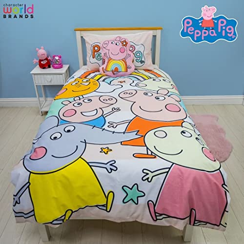 Character World Peppa Pig and Friends - Set copripiumino per letto singolo ufficiale | colorato design giocoso reversibile su 2 lati, con federa coordinata, in policotone
