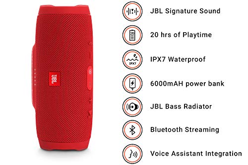 JBL Charge 3 Cassa Acustica Portatile Waterproof con Bluetooth, Rosso