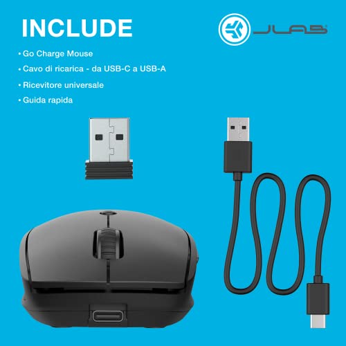 JLab Go Charge - Mouse wireless wireless da collegare tramite Bluetooth o USB, mouse Bluetooth ergonomico per più dispositivi, per computer portatile/telefono/tablet/mac/windows, ricaricabile