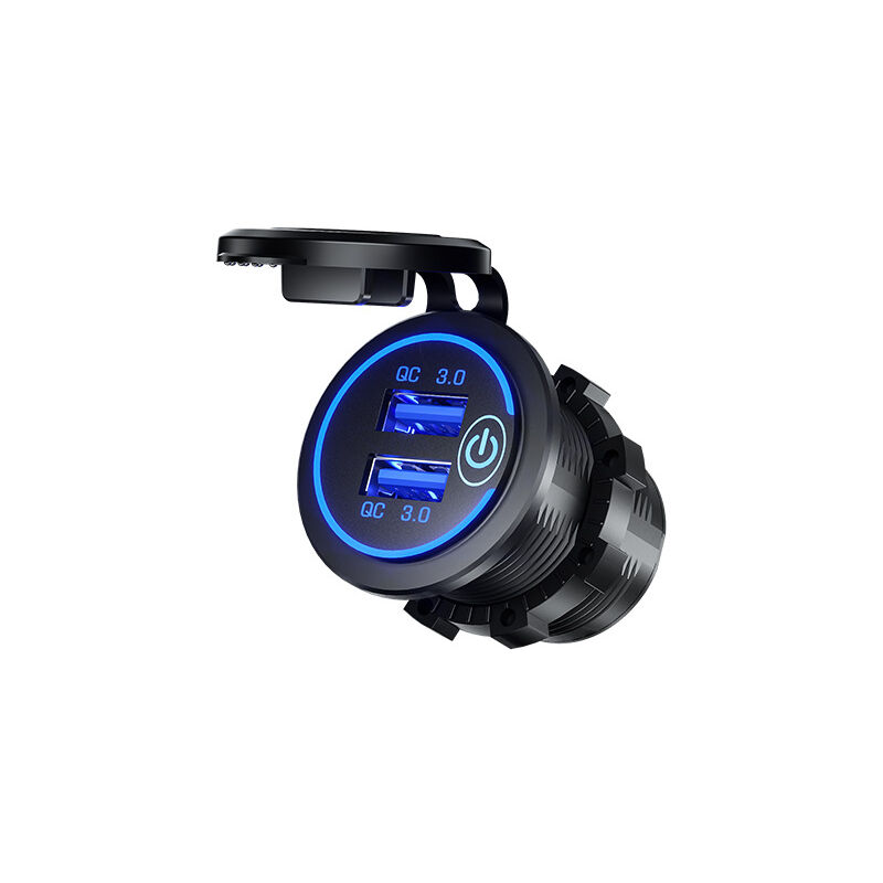 Dual QC 3.0 USB Ports - Cette prise USB 36 W 12 volts est dotée d'un double port de chargement USB QC 3.0 qui vous permet de charger deux appareils compatibles en même temps. Fournit une charge rapide pour les appareils prenant en charge les protocoles de charge rapide. Fournit la vitesse de charge la plus élevée possible pour les appareils à charge non rapide. [Interrupteur tactile avec LED bleue] Interrupteur tactile avec LED bleue La prise USB 12 V est équipée d'un interrupteur de commande d'alimentation. Éteignez l'interrupteur lorsque la prise USB n'est pas utilisée, ce qui économisera l'énergie de la batterie du véhicule. La LED bleue peut vous aider à vérifier si le circuit est connecté avec succès, et il est facile de trouver le port de charge USB dans un environnement sombre. 【Étanche IP66】 Le circuit interne est entièrement fermé et le port USB est équipé d'un pare-éclaboussures étanche à l'eau et à la poussière. Cette prise USB étanche peut être bien adaptée à une