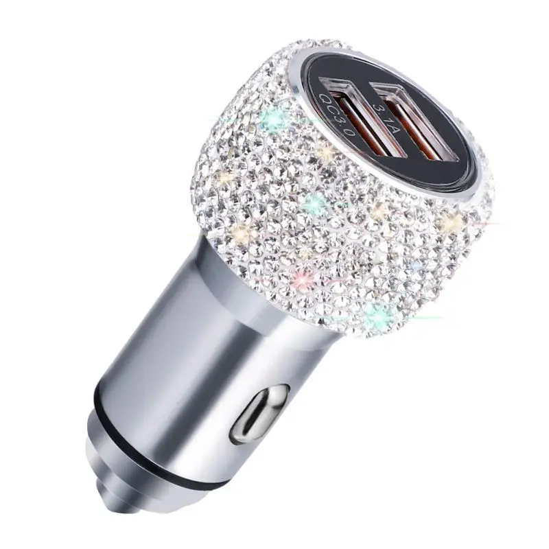 1PCS Car Charger Bling Bling Handmade Crystal Rhinestones Dual USB Car Charger Adapter