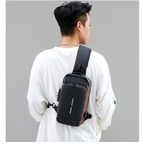 MMTT USB Charging Sport Sling Anti-Theft Shoulder Bag, Anti Theft Crossbody Sling Bag, Waterproof Shoulder Backpack (Black Gold)