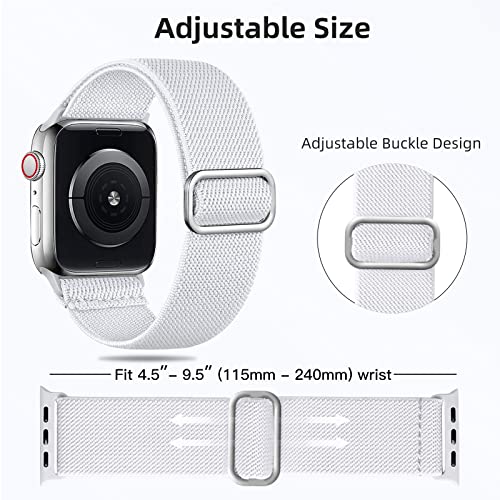 Lunghezza regolabile e super elastico: il cinturino sportivo compatibile con cinturino Apple Watch 40mm 38mm 41mm 44mm 42mm 45mm è adatto per polsi da 4.5"-9.5" (115mm-240mm) per la maggior parte delle persone. I nostri cinturini per orologi elastici per cinturini Apple Watch da donna uomo con design con fibbia in acciaio inossidabile ti consentono di regolare le dimensioni liberamente, elastico super elastico, si adatta perfettamente al tuo polso senza costrizione, non preoccuparti di cadere