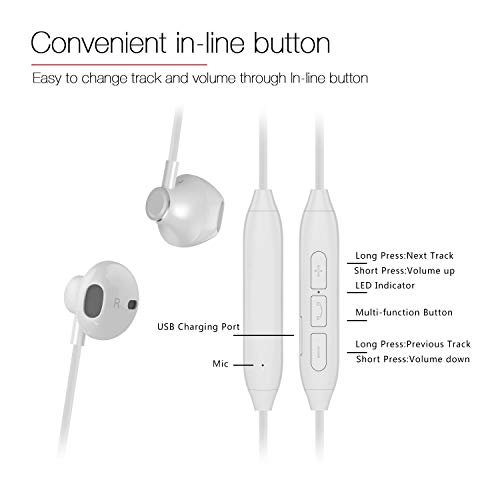 Charlemain Cuffie Bluetooth Magnetiche Auricolari Wireless Resistente al Sudore con Microfono per Phone e Android Samsung Galaxy/Note Huawei Xiaomi LG Sony Smartphone (Bianco)
