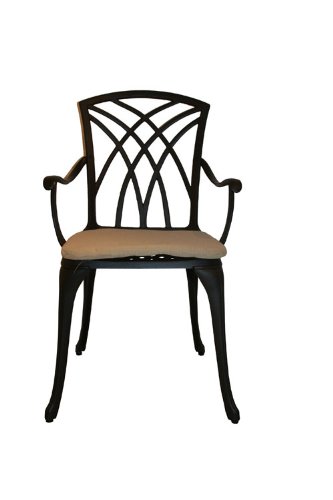 Caratteristiche: Foro centrale per la collocazione di un ombrello (2 pollici di diametro), resistente alle intemperie, nero in alluminio pressofuso con finitura in bronzo