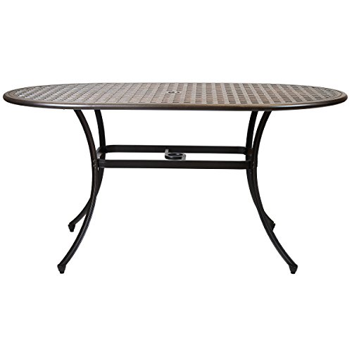 Caratteristiche: Foro centrale per la collocazione di un ombrello, resistente alle intemperie, nero in alluminio pressofuso con finitura in bronzo