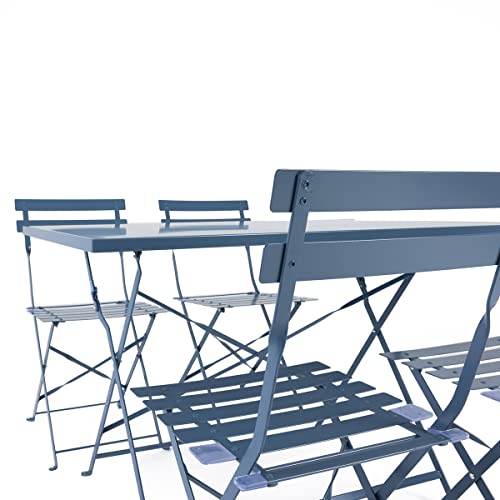 Charles Bentley 4 posti rettangolare pieghevole metallo Sala Set - Navy Grigio
