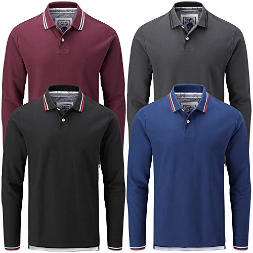 Charles Wilson Camicia Polo Uomo Maniche Lunghe con Bordi in Contrasto (Small, Black (1019))
