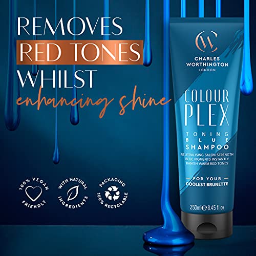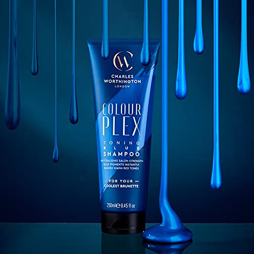 Charles Worthington ColourPlex Toning Blue Shampoo, Brunette Shampoo per Tonificare e Profondo, Shampoo Blu per Capelli Castani, Tonico Marrone per Donne e Uomo, Shampoo Salone per Brunette, 250 ml