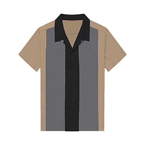 NP Charlie Harper Vertical Striped s Uomini 50s Rockabilly Button-Down Cotone s marrone-grigio. L