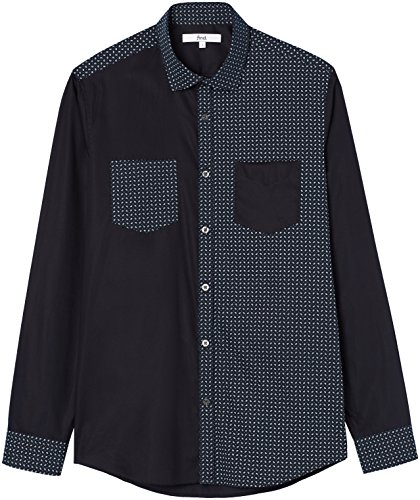 Find. Charlie Poplin Print Mix, Camicia Uomo, Nero (Black), Medium