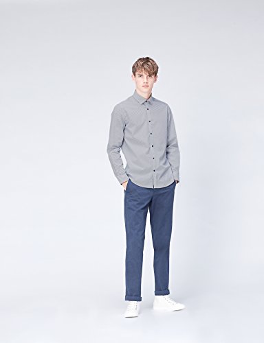 Find. Charlie Tailored Fit L/s, Camicia Uomo, Blu (Navy Geo), X-Large