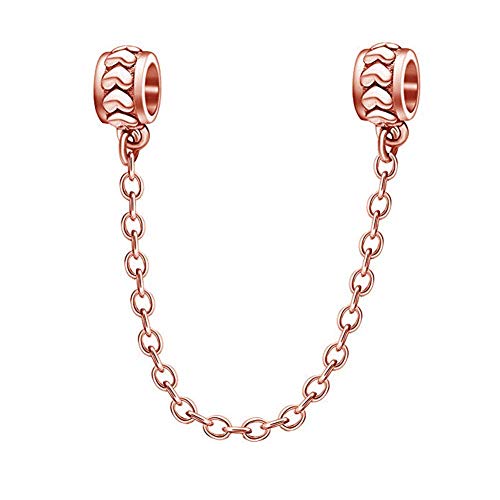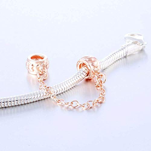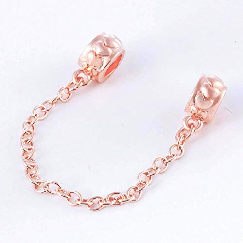 Charm in argento Sterling 925, con cuori e catenella, distanziatore con fermo, con chiusura di sicurezza, per braccialetti Pandora, per compleanno e anniversario Rose-Gold Plated