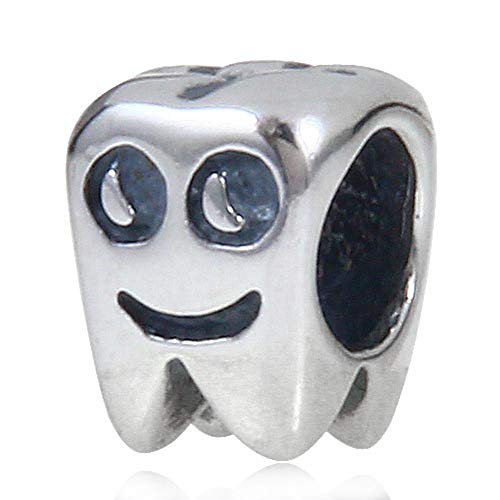 Charm in argento Sterling 925 con denti sorriso, portafortuna per compleanno, anniversario, per braccialetti Pandora