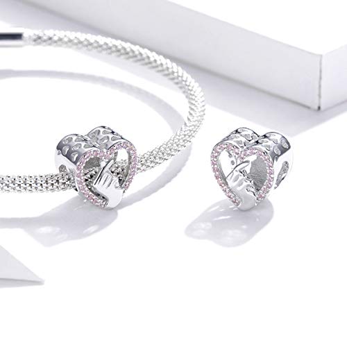 Charm in argento sterling 925, a forma di cuore, con dito, con strass rosa, compatibile con bracciali e collane Pandora