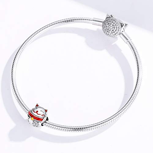 Charm in argento sterling 925 a forma di gattino portafortuna giapponese, animaletto smaltato, compatibile con braccialetti e collane Pandora, regalo per la festa della mamma