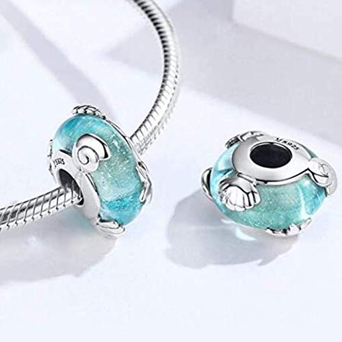 Charm a conchiglia oceanica per braccialetti in argento Sterling S925, adatto per braccialetti in stile Pandora, perline in vetro di Murano, da donna